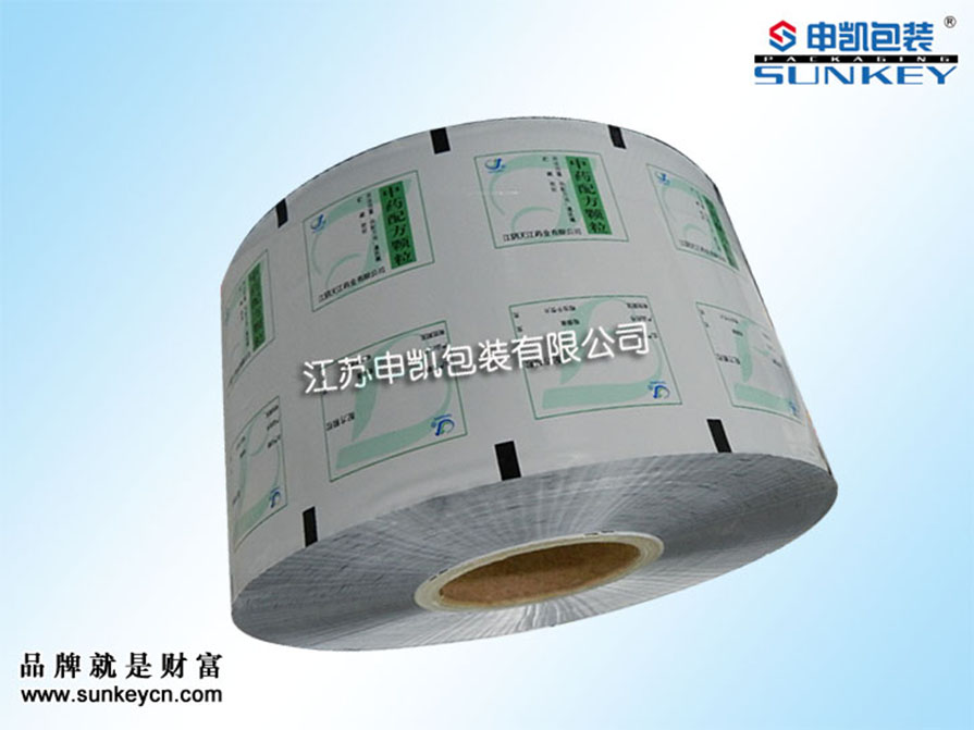 說明:顆粒鋁塑卷膜材質一般是由PET/AL/PE組成,經過印刷-檢品-復合-分切多層工藝。